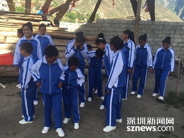 巴塘縣岡日絨村共有23個孩子,他們不會說漢語,不識漢字,無法與外界交流,沒有醫療條件也不懂醫療常識,過著非常原始的貧困生活。當孩子們穿上與深圳孩子一樣的校服,讀到與深圳孩子一樣的圖書時,興高采烈的笑容也與深圳孩子一樣歡暢。