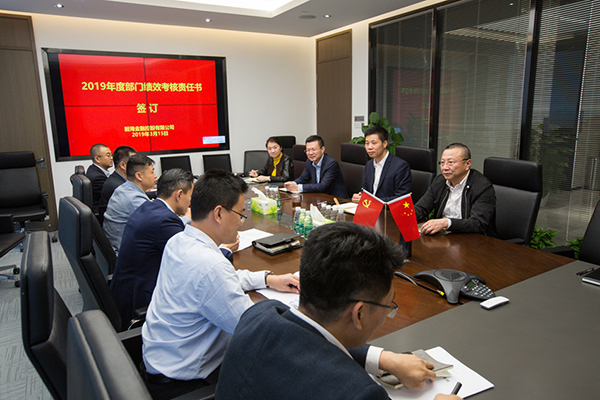 會上,各部門負責人與公司主要領導、分管領導鄭重簽下績效考核責任書,并承諾對部門2019年度績效目標的達成負責。