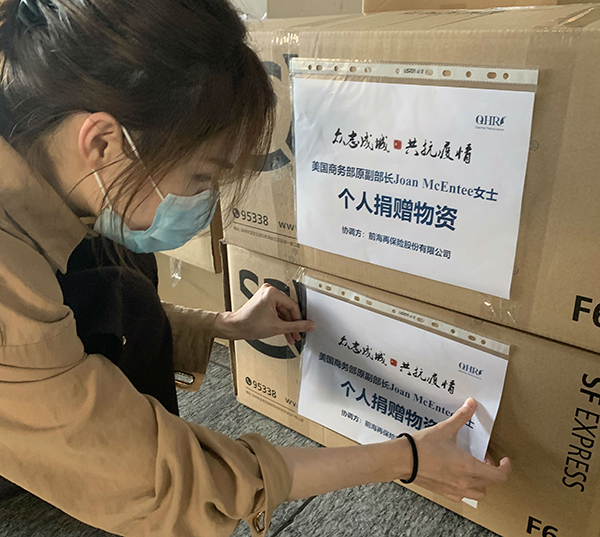 疫情暴發后,面對醫療物資極度緊缺的情況,前海再保險全體員工同全國人民同舟共濟、共抗疫情,千方百計籌措捐贈物資,以緩解醫療機構的燃眉之急。除公司捐贈醫療物資外,公司主要負責人還發動海外友人籌措緊急醫療物資。美國商務部原副部長、美國MKBC國際有限公司董事長瓊•麥肯蒂(Joan McEntee)女士自購醫療物資并由前海再保險協助捐贈至中國的一線抗疫醫療機構。其個人捐贈的第一批物資已于2月29日捐贈至華中科技大學同濟醫學院附屬協和醫院,包括230件隔離服、300件外科手術帽、450副外科鞋套,另有一批民用護目鏡通過前海再保險捐贈至深圳退役軍人紅星志愿服務隊。此外,麥肯蒂女士還號召強生等美國多家企業向武漢醫療機構捐贈了大量醫療物資。