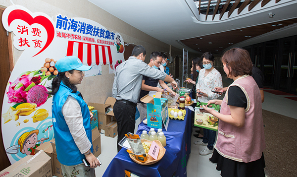 2020年是全面建成小康社會(huì)收官之年,打贏脫貧攻堅(jiān)戰(zhàn)是全面建成小康社會(huì)的重中之重。前海金控積極響應(yīng)國家號(hào)召,主動(dòng)聯(lián)系前海扶貧工作隊(duì)和汕尾扶貧企業(yè),協(xié)調(diào)基金小鎮(zhèn)場地支持,與前海機(jī)關(guān)食堂、前海創(chuàng)新中心食堂、前海黨群服務(wù)中心同步開展消費(fèi)扶貧活動(dòng),以農(nóng)產(chǎn)品集市擺攤的方式,將扶貧地區(qū)農(nóng)產(chǎn)品帶入市場。同時(shí),還組織了前海金融志愿者服務(wù)隊(duì)全程協(xié)助,通過細(xì)致工作和熱情服務(wù),為展銷活動(dòng)圓滿完成提供了充分保障。下一步,前海金控將立足前海實(shí)際,加大力度推進(jìn)消費(fèi)扶貧工作,為決戰(zhàn)脫貧攻堅(jiān)、決勝全面小康貢獻(xiàn)力量。