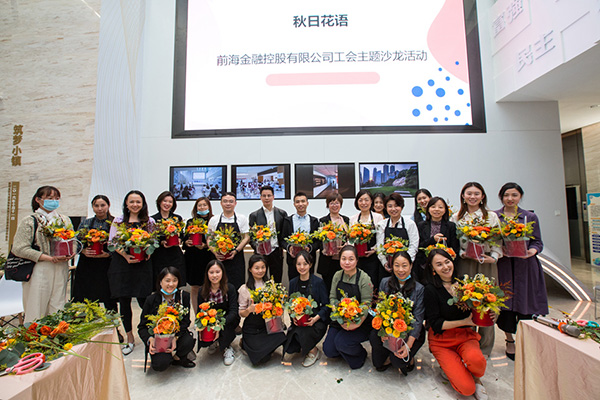 12月1日晚,在前海深港基金小鎮42棟黨群服務中心,前海金控工會委員會組織開展了一場以秋日為主題的花藝沙龍活動,員工們共赴一場以花為名的橙色聚會。