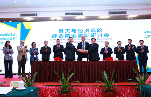 5月13—14日,由北京師范大學(xué)、深圳市前海管理局、達(dá)沃斯全球風(fēng)險(xiǎn)論壇共同主辦,民政部-教育部減災(zāi)與應(yīng)急管理研究院、前海金融控股有限公司、前海再保險(xiǎn)股份有限公司、未來地球綜合風(fēng)險(xiǎn)防范項(xiàng)目共同承辦的“巨災(zāi)與經(jīng)濟(jì)風(fēng)險(xiǎn)綜合防范國際研討會(huì)”在深圳成功舉辦。來自全球的百余名頂尖專家學(xué)者齊聚,共議巨災(zāi)與經(jīng)濟(jì)風(fēng)險(xiǎn)綜合防范。研討會(huì)上,三家主辦單位共同發(fā)布了《巨災(zāi)與經(jīng)濟(jì)風(fēng)險(xiǎn)綜合防范的前海共識》,并簽署戰(zhàn)略合作框架協(xié)議,約定每隔一年共同主辦一次全球性綜合風(fēng)險(xiǎn)防范會(huì)議。