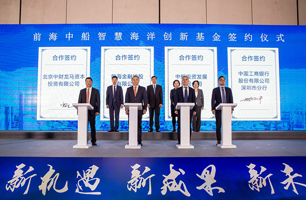 12月7日,“新機(jī)遇•新成果•新未來——2019前海成果發(fā)布會(huì)”在前海深港合作區(qū)舉辦。發(fā)布會(huì)上,前海金融控股有限公司(以下簡稱“前海金控”)與中船投資發(fā)展有限公司、北京中財(cái)龍馬資本投資有限公司、中國工商銀行股份有限公司深圳市分行簽署合作協(xié)議,共同發(fā)起設(shè)立前海中船智慧海洋創(chuàng)新基金。